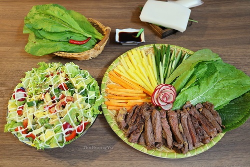 BÒ CUỐN LÁ CẢI CHẤM NƯỚC TƯƠNG MÙ TẠP