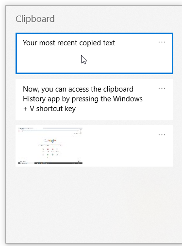 Lịch sử Clipboard cho phép bạn sao chép văn bản và hình ảnh từ các ứng dụng. Các tệp hoặc thư mục được Sao chép Trực tiếp không hiển thị trong lịch sử khay nhớ tạm.