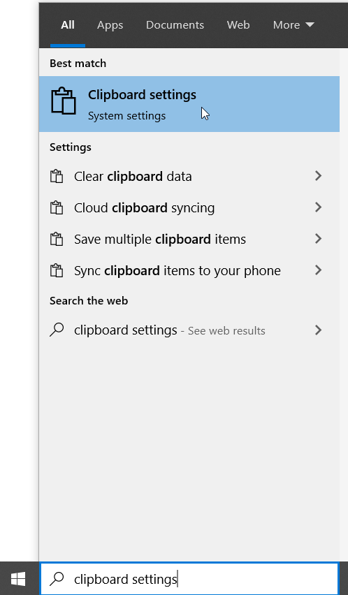 Nhập “Clipboard Settings” trong Search Box của menu Start. Bạn cũng có thể mở Cài đặt khay nhớ tạm từ ứng dụng Cài đặt. Đi tới Settings > System và nhấp vào Bảng tạm - Clipboard ở bảng điều khiển bên trái.