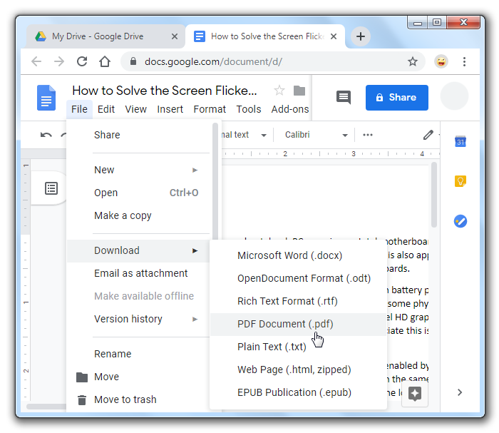 Sau khi quá trình tải lên kết thúc, hãy nhấp đúp vào tệp Word đã tải lên để mở tệp đó trong File > Download > PDF Document (.pdf)Thao tác này sẽ tải tệp Word ở định dạng PDF xuống PC của bạn.