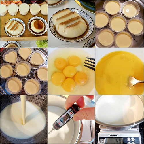 P/s: thêm bớt lòng trắng trứng có ưu khuyết điểm. Ưu điểm giúp cho caramen đứng bánh, cứng cáp. Nhược điểm: gây tanh, muốn bánh caramen bớt tanh thì bớt đi lòng trắng trứng. Ngoài ra để đỡ tanh thì cho thêm vani và khử tanh từ bước đun ấm hỗn hợp sữa và cho trứng vào.