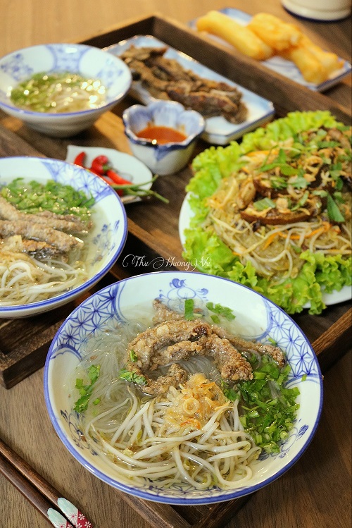 Mình làm hai loại miến là miến lươn nước và miến lươn xào.