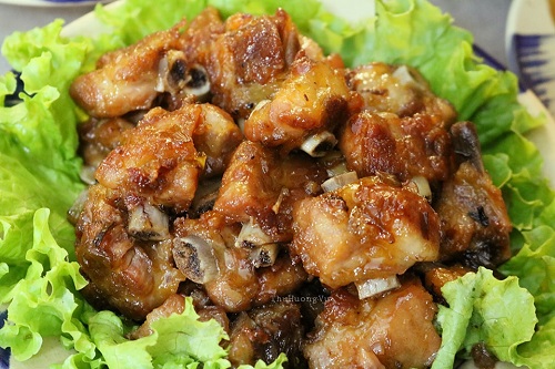 1. 400g sườn non luộc qua nước sôi già và rửa sạch, sau đó đem chiên sơ cho vàng và thơm, ướp 1-2 muỗng canh nước tương hoặc nước mắm tùy khẩu vị.