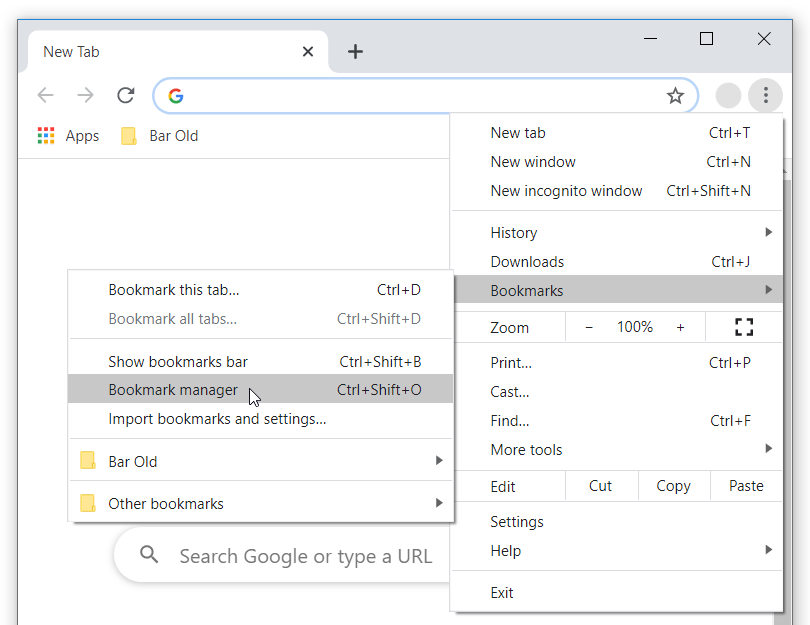 Nhấp vào biểu tượng Trình đơn Chrome ở góc trên cùng bên phải. Đi tới Dấu trang và chọn Trình quản lý dấu trang (bookmark manager).