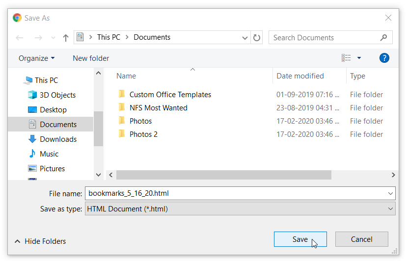 Dấu trang của bạn sẽ được lưu dưới dạng Tệp Html.