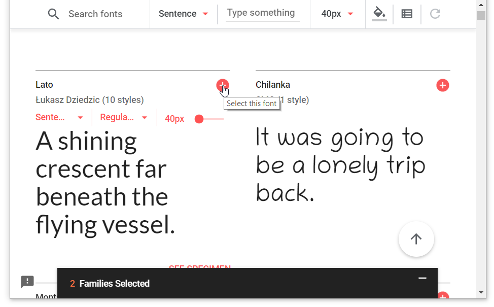 Bạn có thể tìm kiếm các họ phông chữ theo yêu cầu của bạn. Nếu bạn thích một phông chữ thì bạn có thể nhấp vào Add Icon. Bạn có thể chọn bao nhiêu phông chữ bạn muốn và họ phông chữ sẽ được thêm vào ngăn Chọn Phông chữ ở cuối màn hình.