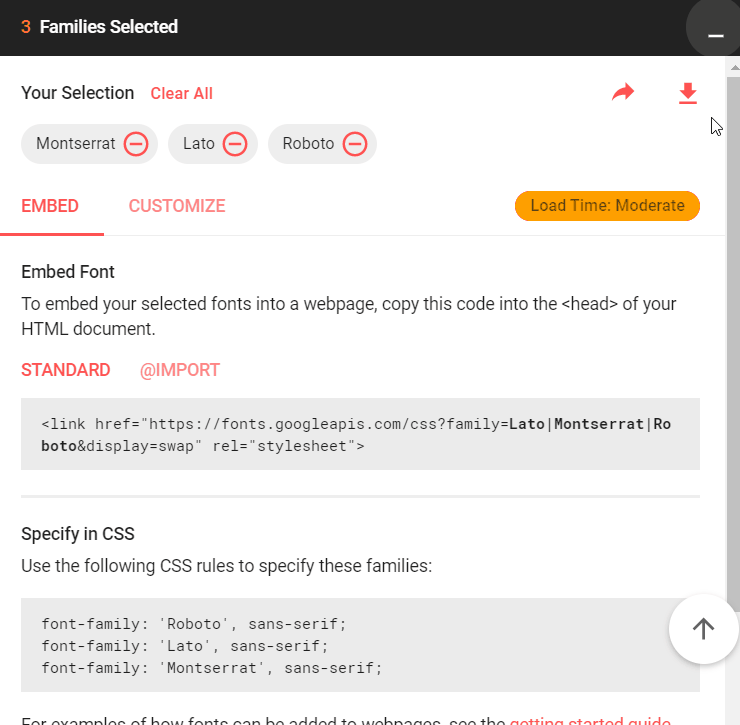 Để tải xuống tất cả các họ phông chữ, hãy nhấp vào biểu tượng Tải xuống ở trên cùng bên phải của Ngăn Chọn Phông chữ và chọn Download.