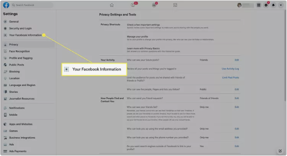 5/ Trong ngăn bên trái, chọn Thông tin Facebook của bạn .