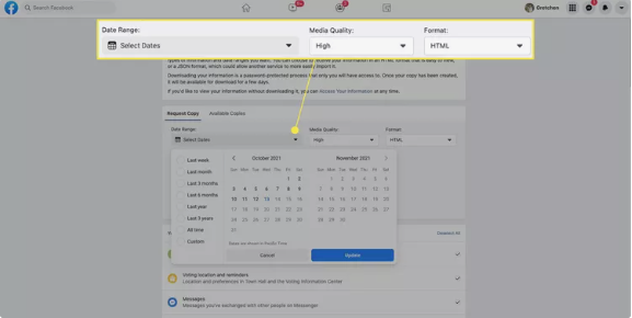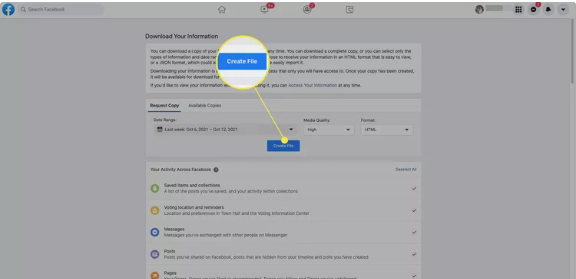 Trên Facebook của mình, bạn có thể có một bản sao ngoại tuyến của riêng ảnh và nội dung khác mà bạn đã đăng lên trang mạng xã hội trong một thư mục mà bạn có thể dễ dàng lưu trữ trên đĩa CD, DVD hoặc máy tính..