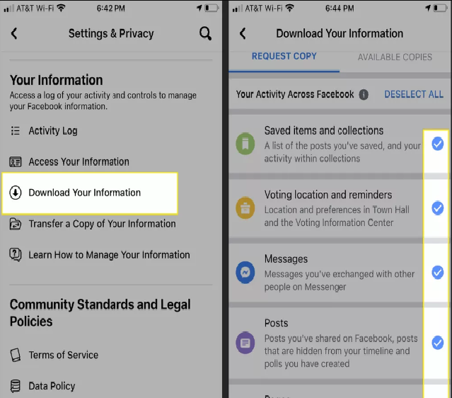 Khi bạn sử dụng Facebook trên thiết bị di động bằng hệ điều hành iOS hoặc hệ điều hành Android, bạn có thể tải dữ liệu xuống thiết bị của mình bằng phương thức sau: