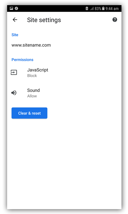 Bây giờ hãy chọn ngoại lệ bạn đã tạo cho trang web. Nó sẽ hiển thị các quyền cho trang web đó. Quyền cho hiển thị JavaScript