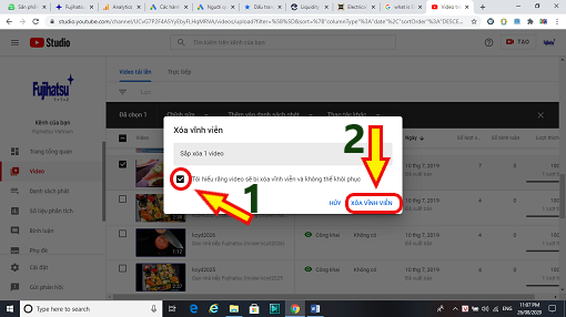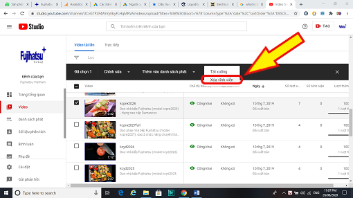 Cách xóa video tải lên youtube chúng ta làm các bước như sau: