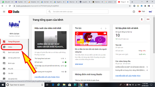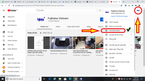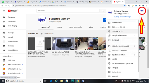 3/ Bấm chuột trái vào mục YOUTUBE STUDIO trên thanh sổ sau khi làm xong bước 2 trên đây