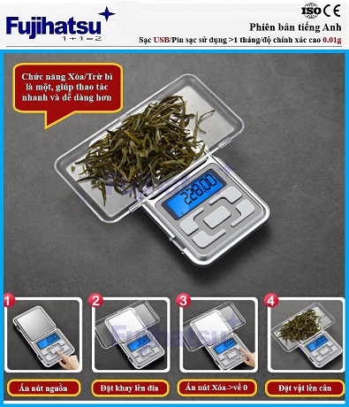 Cân tiểu ly fujihatsu FPS-01 hay cân tiểu ly fujihatsu FPS-01, phạm vi cân 100g / 200g/ 500g/ 1000g, giá trị độ chia điểm d = 0,1g/0,01g. FPS-01 dùng cho nhiều mục đích như cân hàng hóa thương mại có khối lượng nhỏ cần độ chính xác cao như cân hàng mẫu, cân hàng có giá trị cao.. hay cân phân tích, cân phòng thí nghiệm dạng đơn giản.. Đạt chứng nhận quốc tế: ISO 9001.. Số phê duyệt PDM 1592-2020 của TỔNG CỤC TIÊU CHUẨN ĐO LƯỜNG - BỘ KHOA HỌC CÔNG NGHỆ