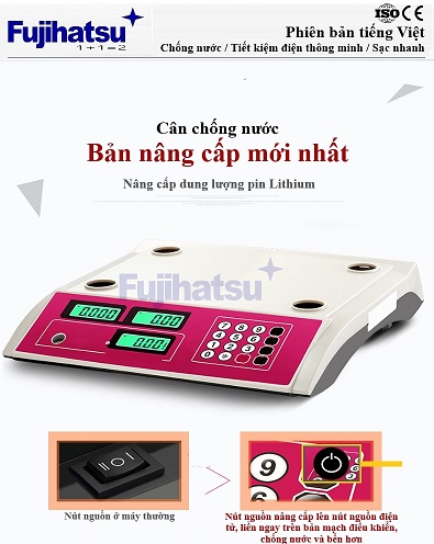 Cân điện tử fujihatsu có các tùy chọn nhiều mầu và sử dụng pin khô hay pin lithium có độ bền rất cao như cân tính giá fujihatsu ftc-01, với thiết kế chống nước, chống muối mặn ăn mòn hay chống ô xi hóa, thích hợp với cân hải sản, cân đồ ăn.. hay với những dịch vụ kinh doanh chuyên nghiệp, hay dịch vụ kinh doanh khu vực những thành phố, tỉnh ven biển như cân chống nước fujihatsu ftc-02,. Còn những vùng miền có thu nhập thấp hay không đòi hỏi nhiều ở chiếc cân tính giá có thể chọn cân tính giá fujihatsu ftc-03,. Để có thế tính được tiền và in kết quả ra giấy như khi bạn đi siêu thị đã có cân siêu thị fujihatsu fsc-01, fsc-02.. Để có một chiếc cân được sản xuất với thép cường lực cao, inox, kết nối bluetooth không dây, khách hàng có thể lựa chọn các loại cân như model fnc-c1, fgc-01, fgc-i1, fss-w1.. Mỗi chiếc cân đều đạt chứng nhận ISO 9001 và có thể giao cho bạn chiếc cân mới của bạn ngay tại nhà máy của chúng tôi, điều đó có nghĩa là bạn sẽ nhận được một mức giá tuyệt vời (giá gốc).