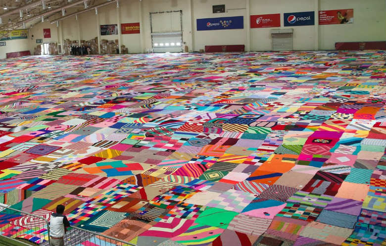 Chiếc chăn lớn nhất thế giới là chăn dệt kim có diện tích là 3.952,21 mét vuông (42,541 ft²) và đã đạt được bởi Kanika Kapur (Ấn Độ) được đo lường tại Dubai, UAE, vào ngày 13 tháng 9 năm 2019. Chiếc chăn khổng lồ này được cô Kanica Kapur và nhóm của cô tạo ra và sau đó sẽ được cắt thành nhiều phần và gửi đến các trại trẻ mồ côi trên khắp thế giới.