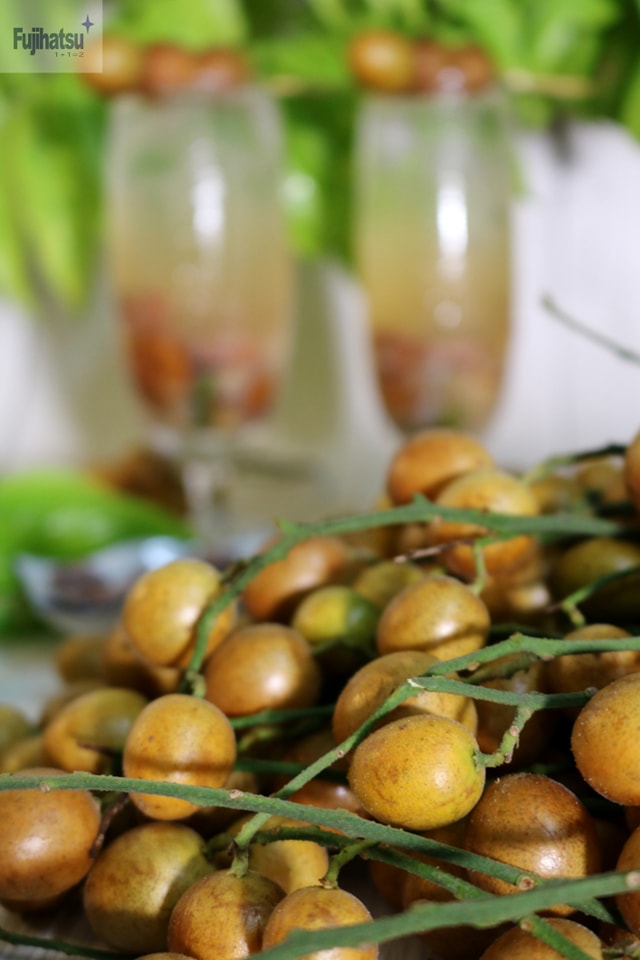 Từng chùm hồng bì lúc lỉu, quả vàng ươm, da bóng mượt, căng mọng, đẹp như màu nắng trong mới nhìn thôi đã thấy thèm rồi. Quả có vị chua thanh mát, khi chín mọng thì sẽ ngọt và rất thơm.
