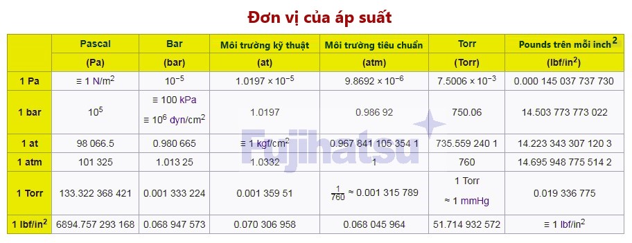 Đơn vị của áp suất (áp lực) là gì? có bao nhiêu loại đơn vị áp suất?