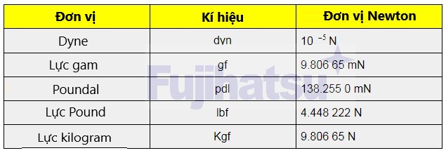 Ngoài ra, có một số cách khác để chúng ta có thể biểu thị đơn vị đo lực.