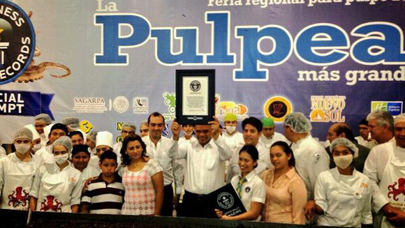 Khẩu phần ăn món bạch tuộc lớn nhất là 1.326,26 kg (2.923,90 lb) được cân bằng cân điện tử, và đã đạt được bởi Comite Estirth del Sistema Producto Pulpo Yucatán và Fundación Produce Yucatán tại Expocampo Yucatán 2014, tại Mexico. Vào 2 tháng 2 năm 2014 món bạch tuộc được 100 đầu bếp chuẩn bị trong hơn 8 giờ trước khi được phục vụ cho đám đông ước tính hơn 15.000 người vào ngày cuối cùng của sự kiện Expocampo Yucatán của thành phố.