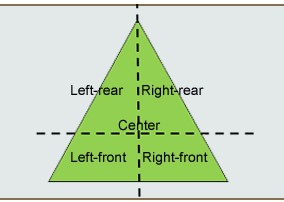 Đặt một trọng lượng duy nhất nặng khoảng 1/3 đến 1/2 khả năng cân cân kế liên tiếp vào các vị trí như trong Hình 1 (giữa, phải trước, phải sau, trái sau, trái trước và giữa) và ghi lại giá trị đo tại mỗi vị trí. (Đối với vị trí trung tâm, đặt trọng lượng ở giữa chảo. Đối với các vị trí khác, đặt chúng vào giữa các góc phần tư tương ứng của chảo. Ví dụ, đối với một chảo tròn, bù một nửa trọng lượng bán kính Trung tâm.). Tính toán chênh lệch giữa giá trị đo được tại mỗi vị trí không nằm giữa và giá trị trung bình của hai giá trị trung tâm (gọi là lỗi lệch tâm). Số dư vượt qua kiểm tra nếu chênh lệch nằm trong dung sai quy định. Thay vì trung bình của hai giá trị được đo tại tâm, sai số lệch tâm cũng có thể được xác định là chênh lệch so với giá trị trung tâm ban đầu.