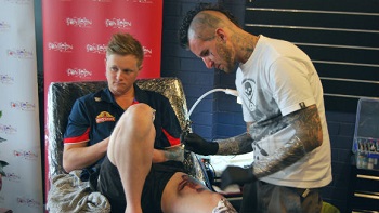 Trong suốt quá trình "chạy marathon", diễn ra tại nơi làm việc của Krzysztof Modern Ink Fremantle, anh đã hoàn thành 11 hình xăm khác nhau, đủ màu sắc, động vật và nhân vật - thậm chí có cả Chunk, một nhân vật trong phim “Goonies”.