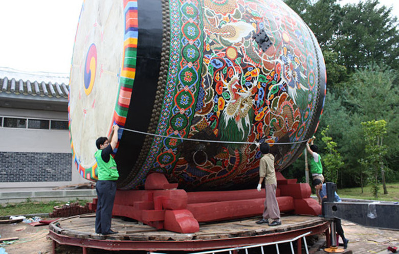 Trống lớn nhất thế giới có đường kính 5,54 m (18 ft 2 in) cao 5,96 m (19 ft 6 in) và nặng 7 tấn (15,432 lb 5,76 oz) được cân bởi cân điện tử và được tạo bởi chính quyền địa phương Yeong Dong-Gun và Seuk Je Lee (đều thuộc Hàn Quốc) và được đo lường tại Simcheon-Meon, Hàn Quốc, vào ngày 6 tháng 7 năm 2011. Trống là loại trống "CheonGo" truyền thống của Hàn Quốc.